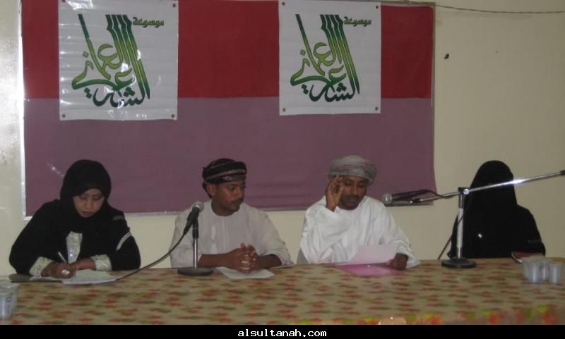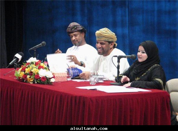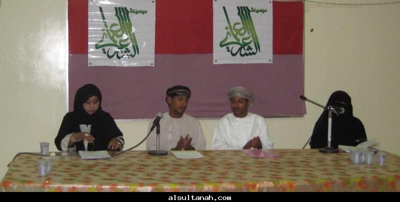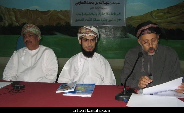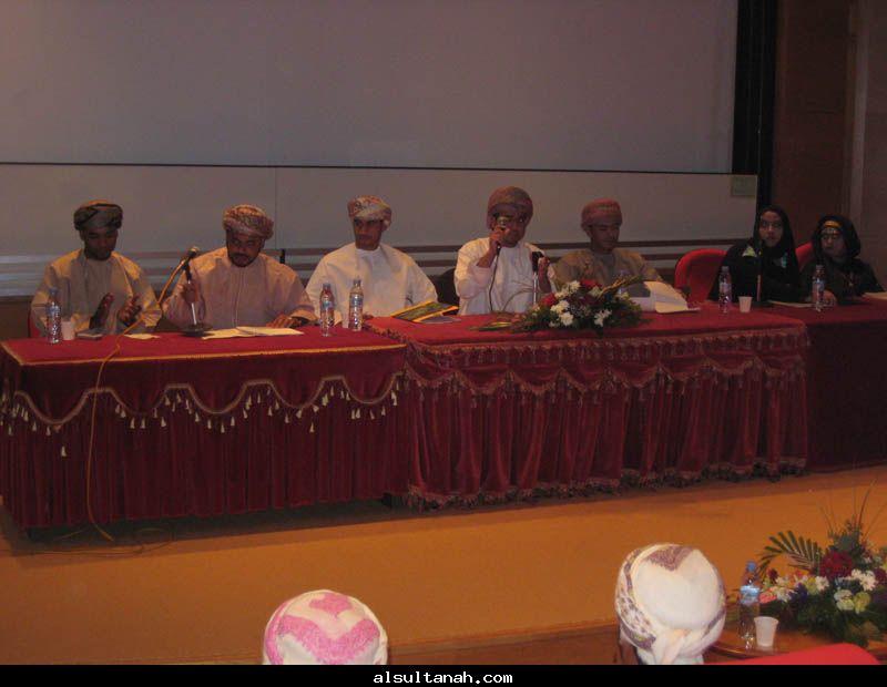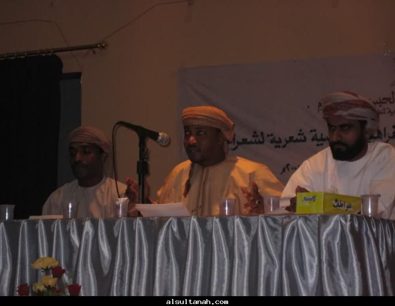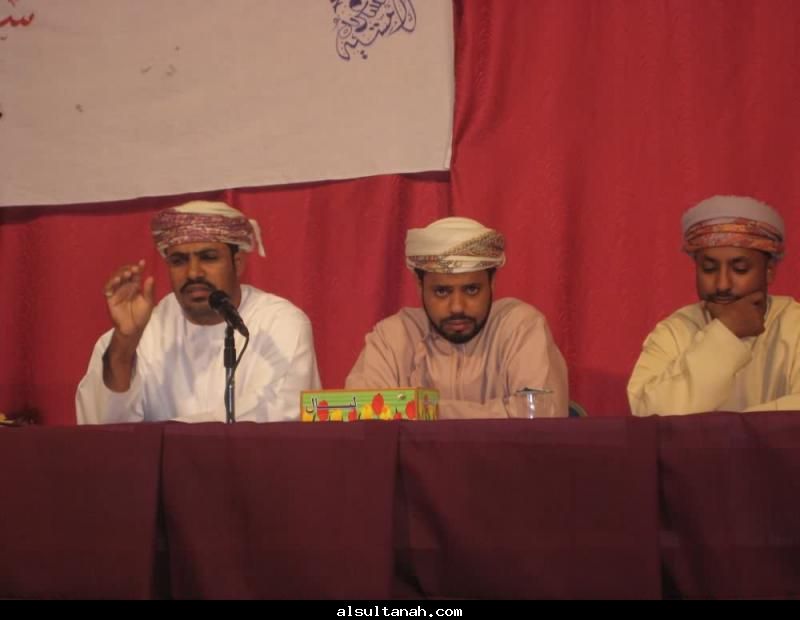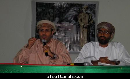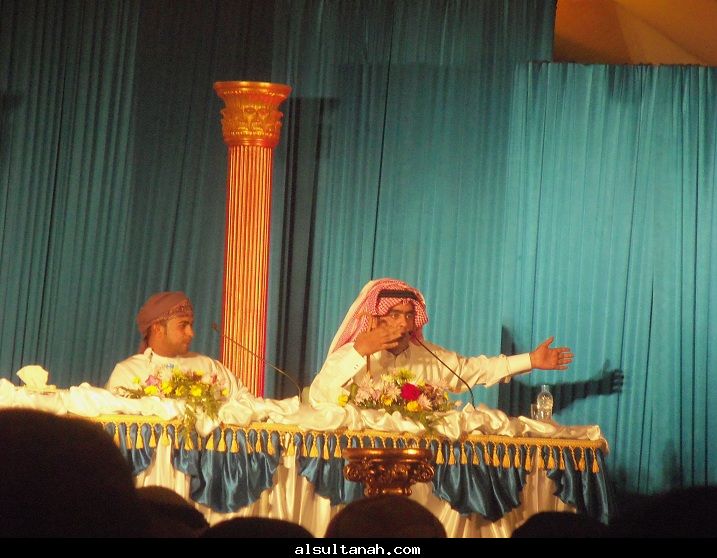 الأمسية الثقافية التي أقامها موقع السلطنة الأدبي 25- 3- 2010 على مسرح نادي الكامنل والوافي ، وقدمها د.سعيد بن محمد الهاشمي (يسار الاعلامي عبدالرحمن الراسبي)