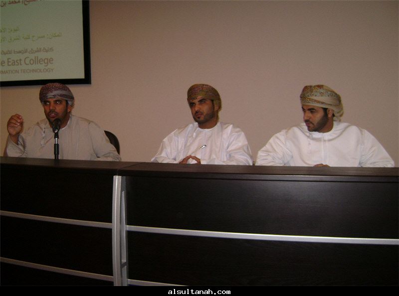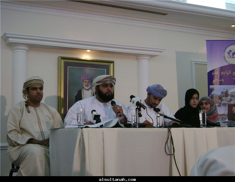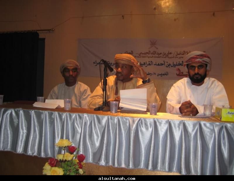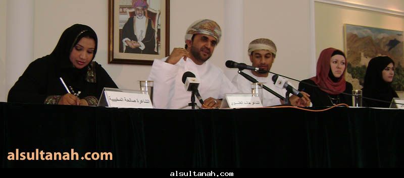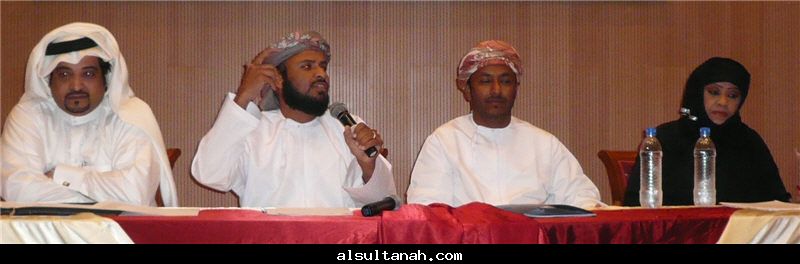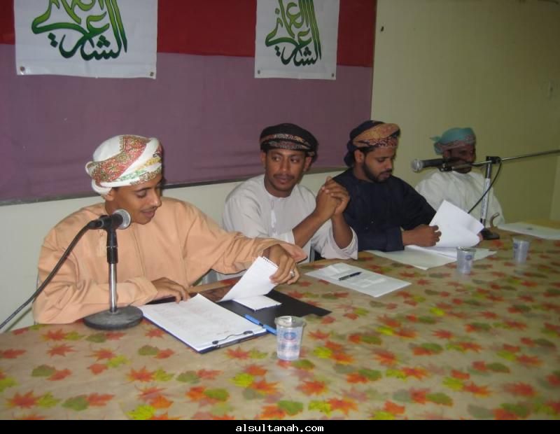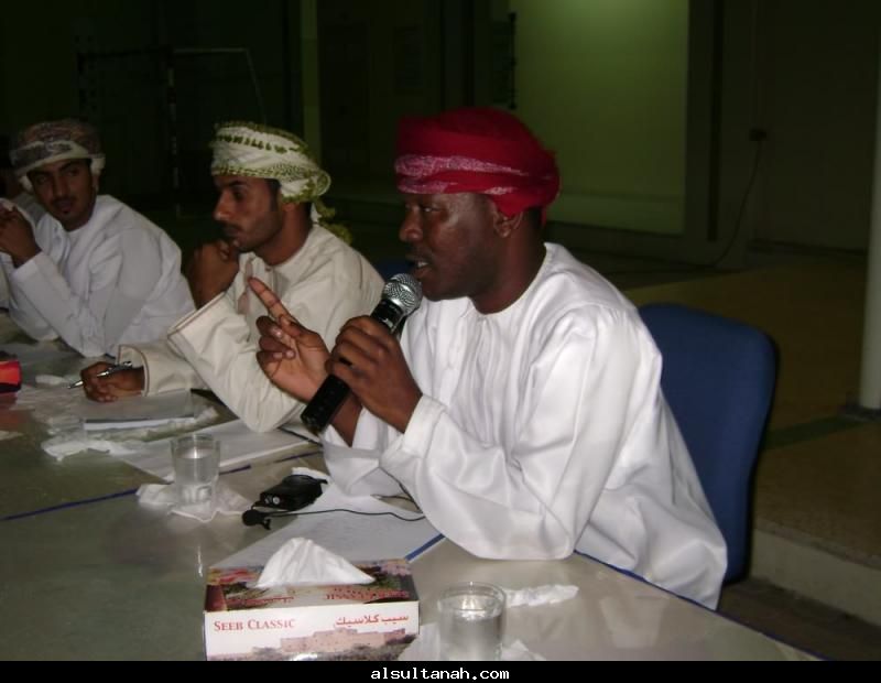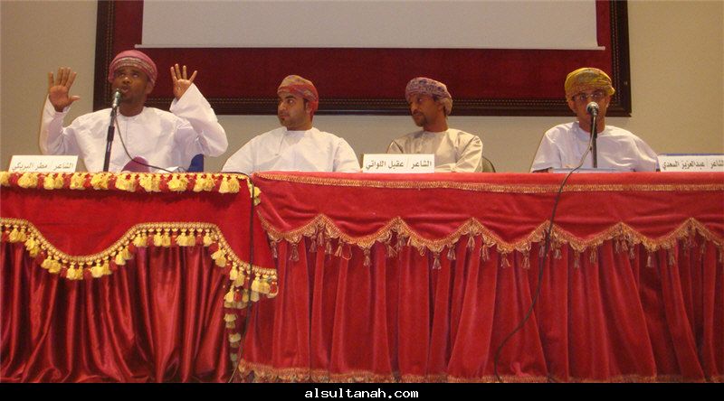 الأمسية الثقافية التي أقامها موقع السلطنة الأدبي 25- 3- 2010 على مسرح نادي الكامنل والوافي ، وقدمها د.سعيد بن محمد الهاشمي (يسار الاعلامي عبدالرحمن الراسبي)