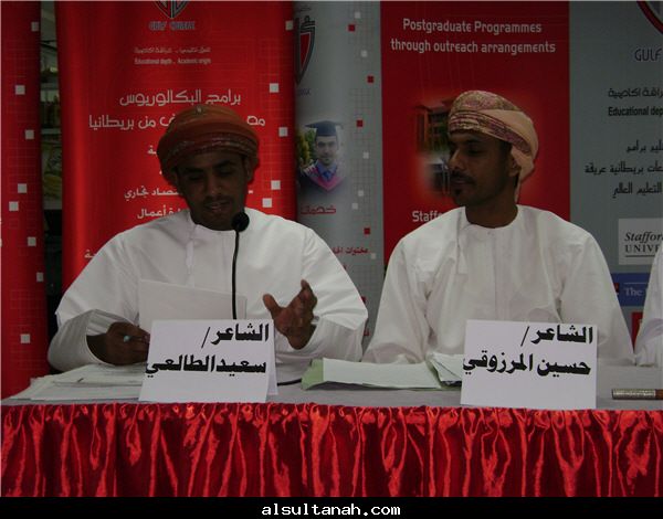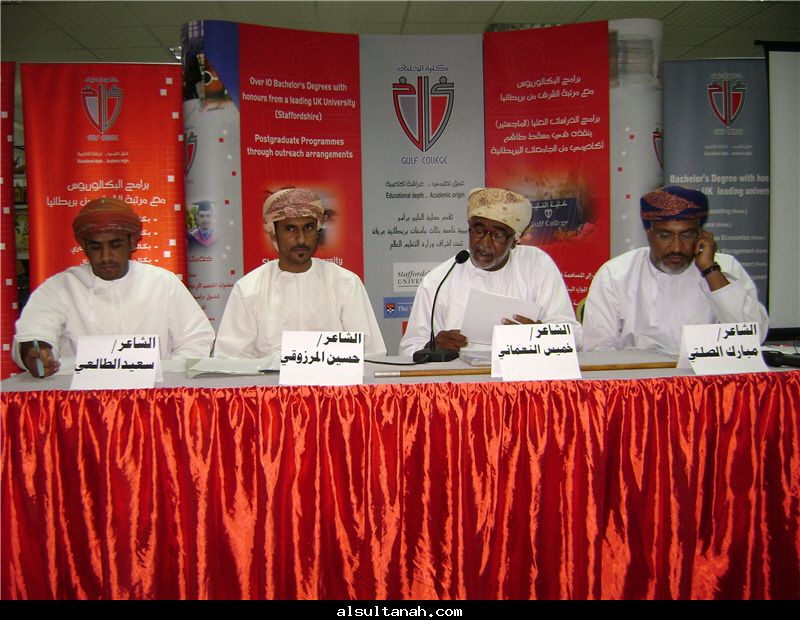 من اليمين الشاعر ناصر الهاشمي والشاعر إبراهيم بني عرابه الفائز بالمركز الأول بجداره بالشعر النبطي بشاعر القصيد 3 بجامعة نزوى .. والشاعر تركي الحبسي والشاعر أحمد الهديفي..